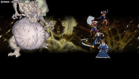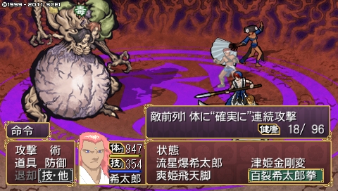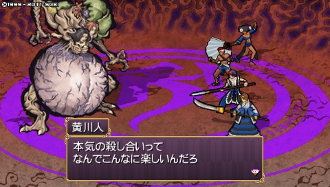 暴れまくる黄川人。暴れ石の上位版、魔王陣を連発してきます。ところで私は、2の魔王陣の演出の方が好きだったりします。誰ですか1の魔王陣で石を飛ばしてくるオサーンは。