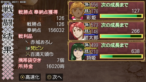 ・「今月も赤火がない~!」と嘆いたり、「赤火キター!!…って、そこかよ!!」と突っ込みを入れつつ武具や術をゲット