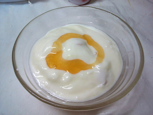 フルグラの上にヨーグルトをのっけて蜂蜜をたらり。