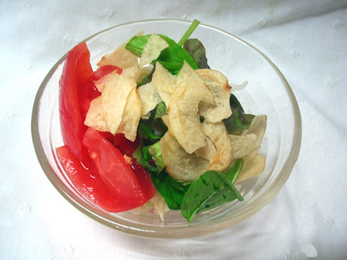 弥子の好物再現、お手軽なものからいってみよう!ということで…今回は「野菜サラダのポテチのせ」再現です。