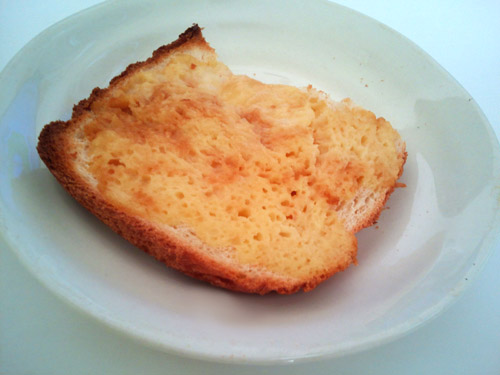 味の方は、カラメルのかかったフレンチトーストのようで、これはこれでおいしかったです。フレンチトーストを食べたいけど材料がないとか、浸す時間も惜しいくらい今すぐフレンチトーストが食べたい!と言う時に良いのではないでしょうか(^^)