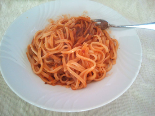 このパスタに限ったことじゃないのですが、冷凍パスタはレンチンした後に鍋とかに一度移してよーく混ぜてからお皿に盛った方が良い気がします。麺がけっこうダンゴ状態になっててソースが上手く混ざらずに味が偏ることが多いので…。