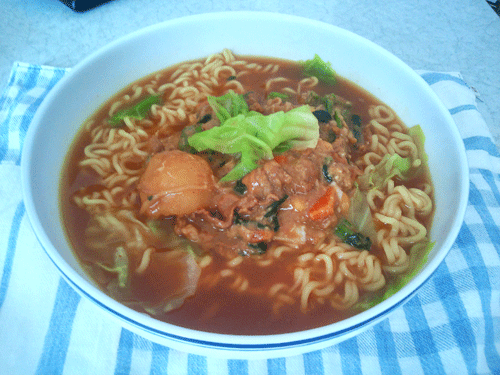 記念すべき?第1回は「インスタントラーメンキャベツのせ」です。